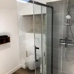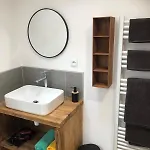 A fürdőszobai felszerelések külön WC-t és zuhanyzót is magukba foglalnak. Hajszárítót is kínálnak.